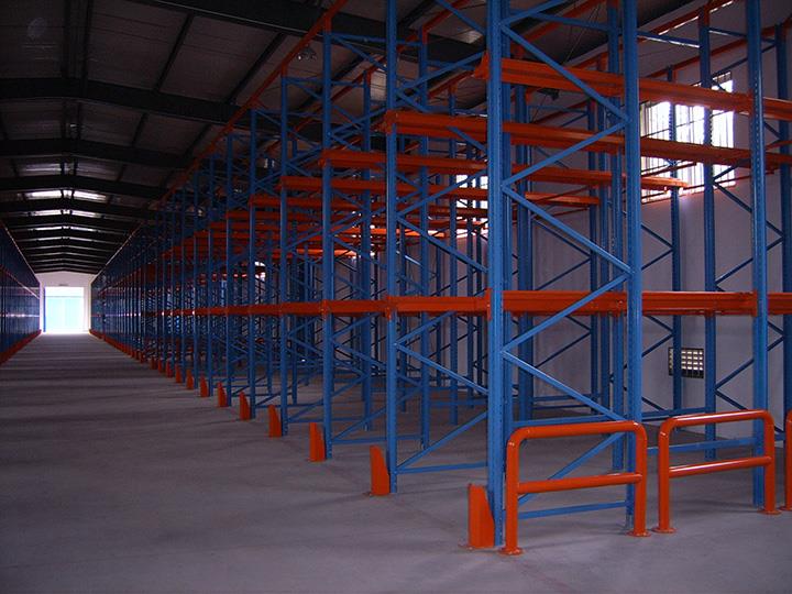 貫通式貨架允許叉車進(jìn)入過道存取貨物,適合小品種、散裝貨物儲(chǔ)存。除了通道附近的通道槽,由于叉車需要進(jìn)入貨架內(nèi)才能存取貨物,通常單面取件建議不超過7個(gè)空間深度。為了提高叉車運(yùn)行速度,根據(jù)實(shí)際需求選擇配置導(dǎo)引軌道,與貨位式相比,貫通式的倉庫空間利用率可提高更多30%以上。