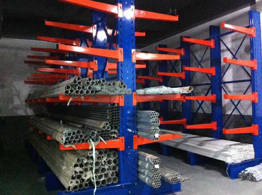 懸臂式貨架一般用于存放長材料、環(huán)狀材料、板材、管道和不規(guī)則貨物。懸臂可以是單面或雙面,懸臂架具有結(jié)構(gòu)穩(wěn)定、承載能力好、空間利用率高等。懸臂架柱多為H型鋼或冷軋鋼,懸臂采用方形管材,冷軋鋼或H型鋼,懸臂與立柱之間采用插電式或螺栓式,基材和立柱采用螺栓固定式,底座使用冷軋鋼或H型鋼。貨物使用由叉車、車輛或手動(dòng)進(jìn)行。