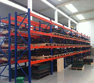 橫梁貨架在倉庫并行分布成若干排,可兩兩背靠組合安裝,其組之間留有一條巷道,供堆垛起重機、叉車或其他